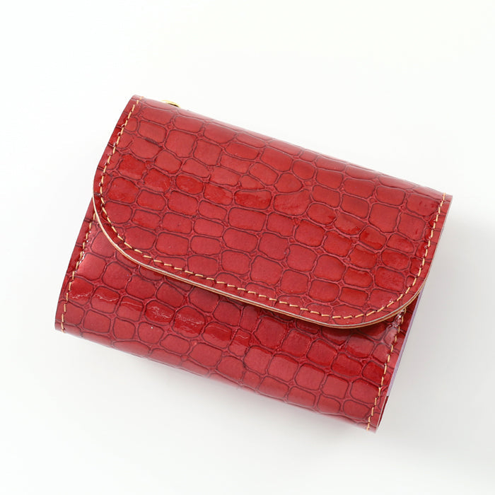 シックなレッドとワニ革のような見た目が
